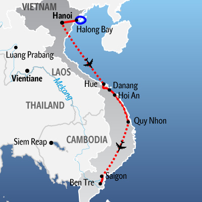 Reiseverlauf wie beschrieben, ab Stadthotel Hanoi bis Flughafen Saigon